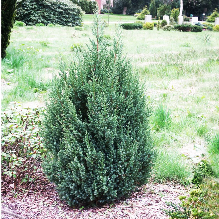 Декоративность: густой, конический, медленнорастущий сорт. Достигает в возрасте 10 лет 2 м роста. Побеги растут вертикально.
